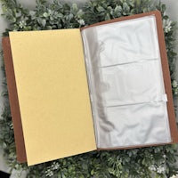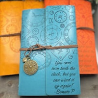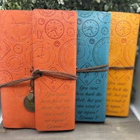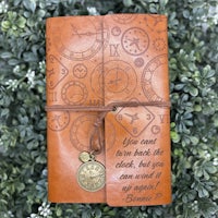 Customizable laser engraved notebooks. These 6-ringed notebooks come with beautiful vintage lined paper that is refillable. So this notebook can be utilized over and over again. Once you run out of sheets you can easily find refill paper to continue your journaling or note-taking adventures.